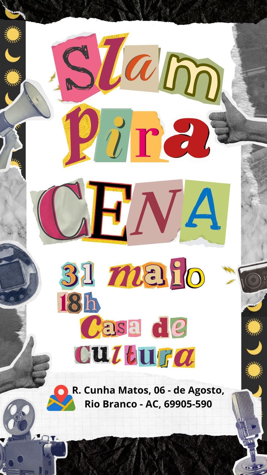 No dia 31 de maio, às 18h, o Slam Pira-Cena,campeonato de poesia marginaldo Acre,em Rio Branco, que acontecerá na Casa de Cultura da Gameleira.