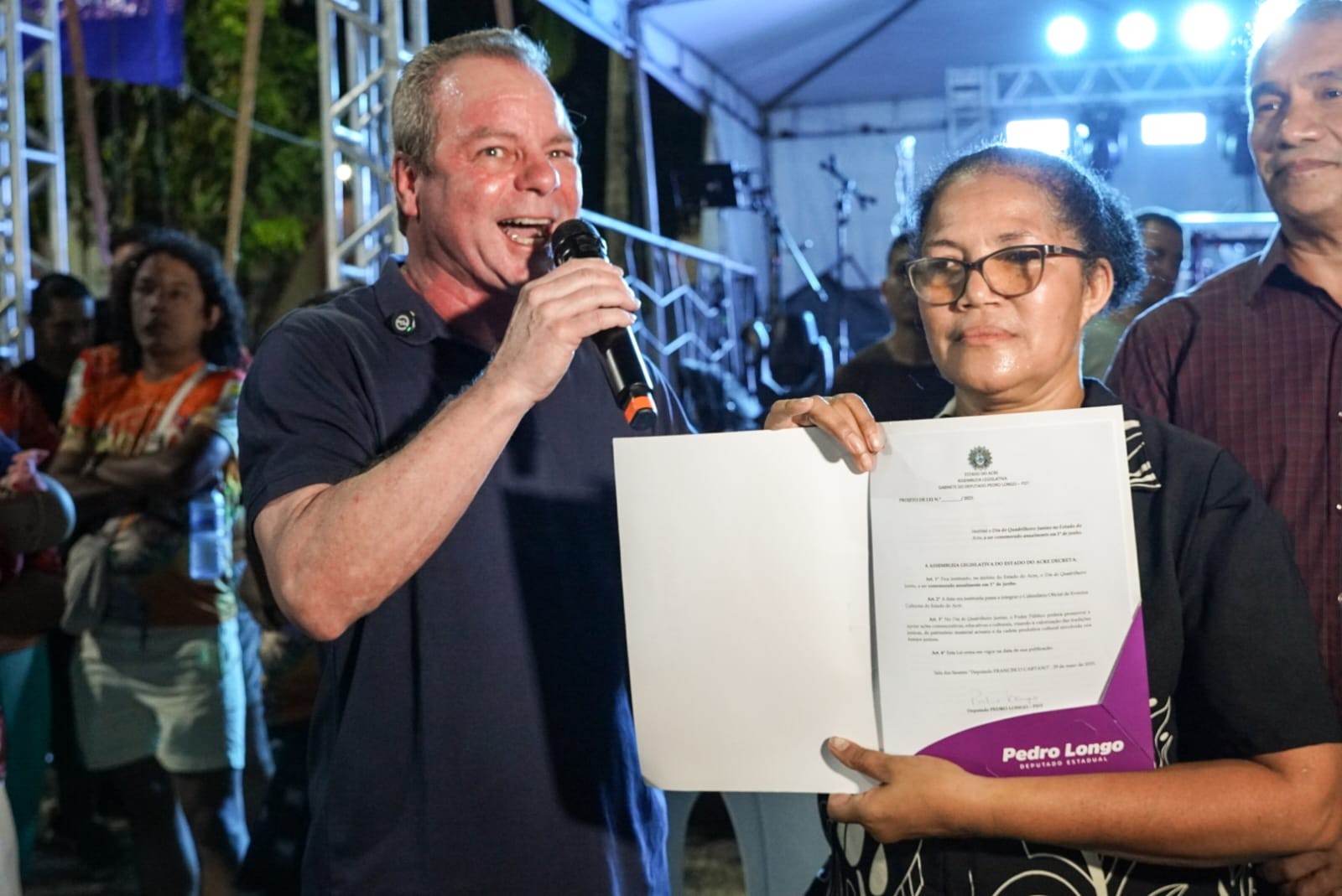 A iniciativa é de autoria do deputado estadual Pedro Longo, que entregou simbolicamente o projeto à presidente da Liga de Quadrilhas Juninas do Acre (Liquajac), Francilene dos Santos. Segundo o parlamentar, o objetivo é valorizar ainda mais os quadrilheiros, reconhecendo sua importância para a cultura e o turismo acreano.
